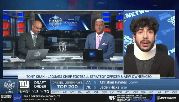 Tony Khan has made headlines with his recent comments directed at WWE. The President of AEW made an appearance on NFL Network during this week’s NFL Draft, showcasing his dual role within the organization as he also has ties to the Jacksonville Jaguars, owned by his father, Shahid Khan. In the interview, Khan proudly discussed the rapid success AEW has achieved in just a few short years, comparing it to the groundbreaking start of the AFL.